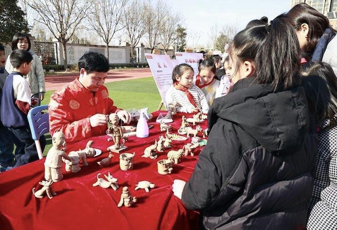 此次活动共有20余个非遗项目,包括吹糖人、布老虎、香包、纸雕、翻花、面塑软陶、糖画、布艺堆画、泥咕咕、中国结、盘纸艺术、毛线编织、串珠、草编、画像、木雕、簪子、头花、葫芦烙画、泥塑、捏面人、漆扇等。同学们参与其中,体验非遗传统文化的深厚魅力,同学们在快乐体验非遗的过程中,将非遗文化根植于心中。